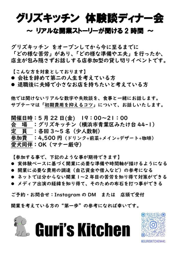 グリズキッチン 体験談ディナー会 のご案内